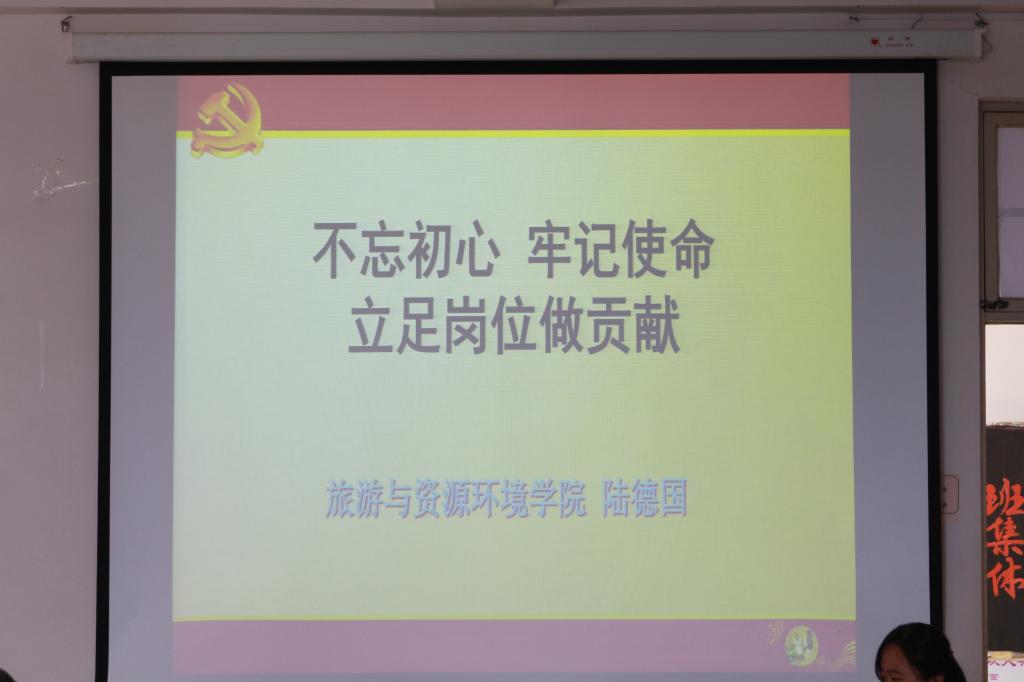 为深入贯彻学习习近平新时代中国特色社会主义思想和党的十九大精神,2019年6月26日下午,beat365在线唯一官网在理工楼2514开展以“不忘初心、牢记使命,立足岗位做贡献”为主题的党课。党总支书记陆德国担任此次党课的主讲。