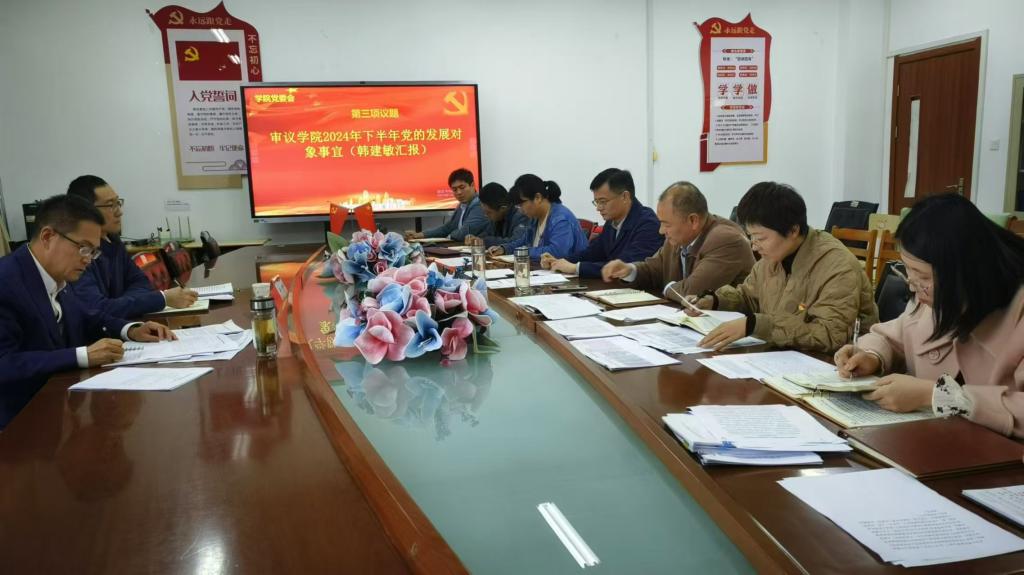 学院党委理论学习中心组集体学习了习近平总书记在全国教育大会上的重要讲话精神并开展了研讨交流,院党委书记李中军领学,韩建敏、王友郡、范增良围绕学习内容分别做了交流发言。学院党委会由院党委书记李中军主持,“第一议题”学习了习近平总书记在庆祝中华人民共和国成立75周年招待会上的重要讲话精神。对学院2024年下半年入党积极分子发展事宜、学院2024年下半年党的发展对象事宜等工作进行了研究审议。学院党政联席会由院长王满堂和院党委书记李中军主持,审议了酒吧实训室和咖啡实训室实验耗材事宜、学院综合测评实施方案等工作并做出决议。