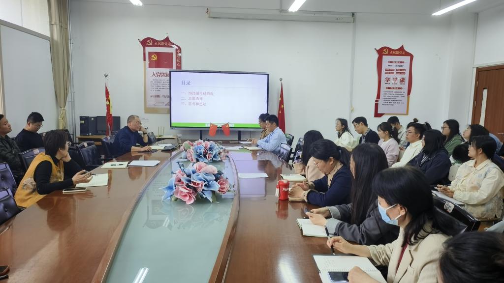 李中军强调,考研是学生成长的重要阶梯,是家长的殷切期盼,更是检验学院育人成效的‘试金石’。对此,他提出六点工作要求:一要锚定考研育人核心定位,筑牢思想引领基石;二要强化政策传导,激发学生报考内生动力;三要构建精准机制,夯实专业指导服务根基;四要聚焦学科特性,优化专业报考策略指导;五要拓展多元成才通道,以立体赋能拓发展赛道;六要激活党员先锋动能,以红色引领强化考研服务。
