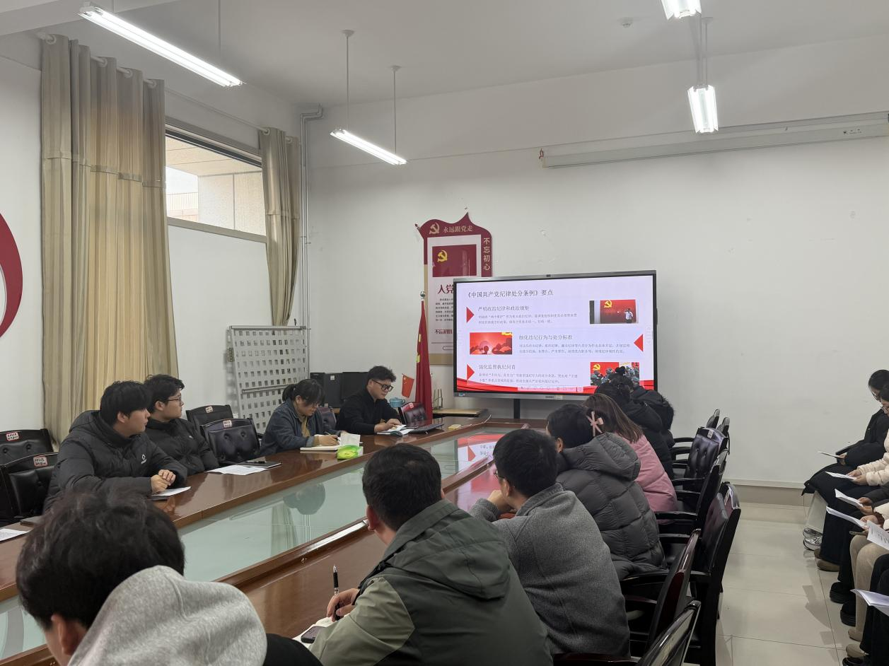 会上,全体与会人员围绕廉洁教育和党纪法规认识展开了深入研讨。孙盼盼认为党员教师要恪守法规底线,抵制不正之风,要保持党员教师廉洁形象,立德树人、以德服人;丁芳提出要将廉洁理念融入教学工作与师德建设之中,自觉加强党纪法规学习;阴法庭从课堂教学角度强调廉洁从教是坚守教育初心的重要准则;程思承诺在知识传授过程中要注重学生品德培养,绝不触碰党纪法规底线;张宏杰结合科研工作分享了坚守学术道德的感悟;学生党员代表则结合自身学习和实习实践经历,表示将在今后的学习和实践中继续恪守廉洁原则,主动加强纪律意识。