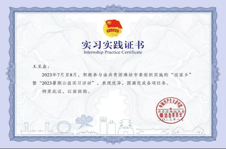 王呈鑫22地理科学本科1班学生,峡山区政务服务中心的一名实习工作人员。实习期间整理审批档案,对项目审批流程有了深入的了解,学会了很多相关工作岗位的实践技能。