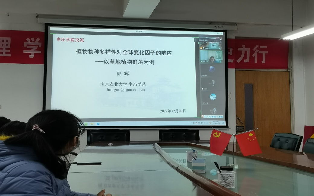 2022年12月9日下午,beat365在线唯一官网邀请南京农业大学生态学系主任、博士生导师郭辉教授作学术作题为《植物物种多样性对全球变化的响应:以草地植物群落为例》的学术报告。院长王满堂主持报告,学院全体专任教师及地理科学专业学生聆听了报告。