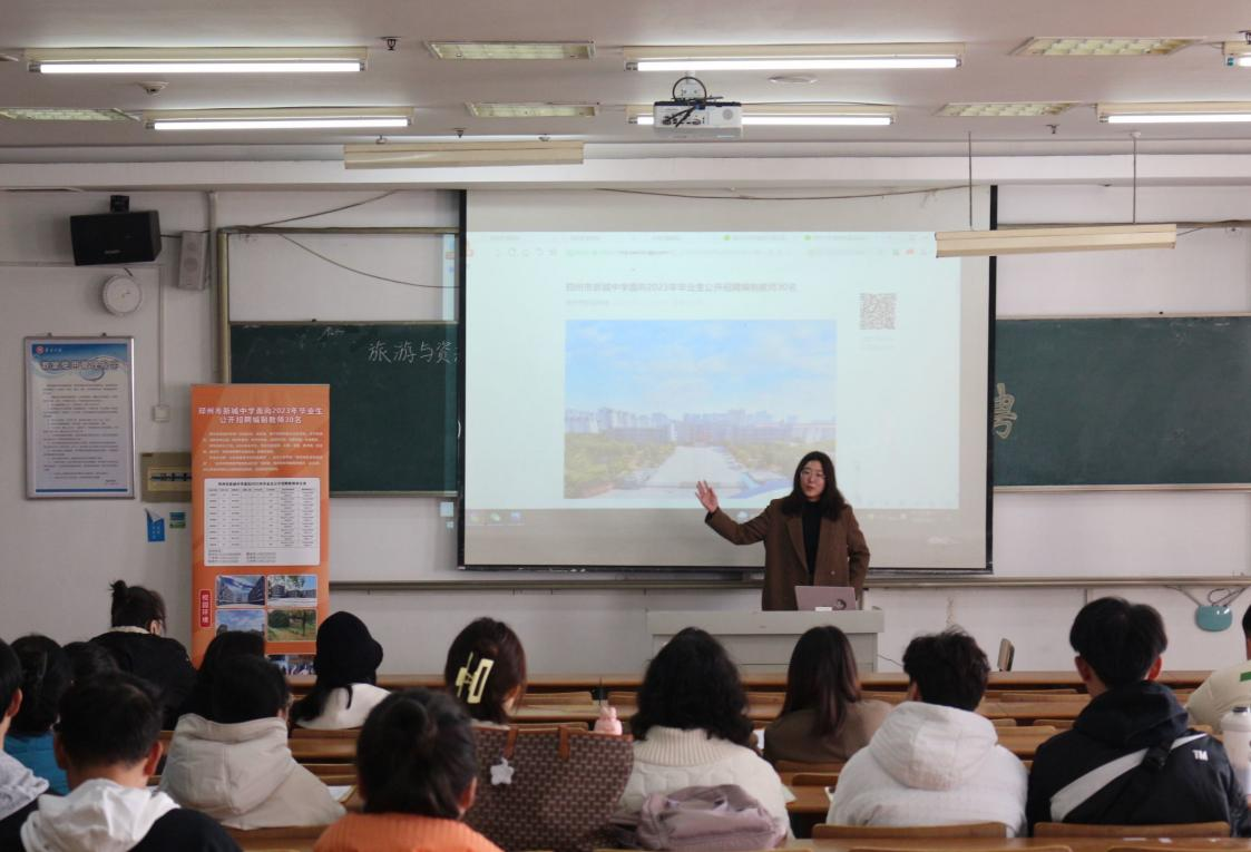 为推动beat365官网学生高质量就业,搭建学生与用人单位双向选择平台,3月1日,beat365在线唯一官网在综合楼311教室举办邳州新城中学校园招聘会。负责此次招聘会的是邳州新城中学副校长王建新,2025届地理科学专业40多名应届毕业生参加了此次招聘会。