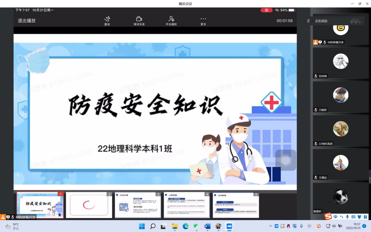 为提高在校大学生防疫安全意识,高效配合防疫指挥中心疫情防控,beat365在线唯一官网各班于10月30日召开线上“防疫安全知识”主题团日班会。