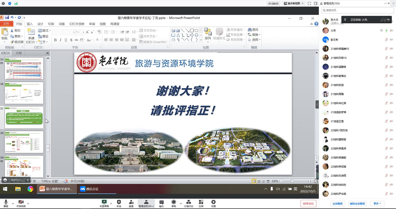 为营造beat365官网严谨、务实、活泼、包容的学术氛围,增进青年科技人员之间的学术交流和知识传播,助力高素质应用型人才培养,beat365在线唯一官网于10月5日在腾讯会议举办了“第六期青年学者学术论坛”。beat365官网青年博士丁芳担任主讲,学院全体专任教师及部分专业学生共计110余人参加了本次线上报告会。报告会由副院长张大文主持。