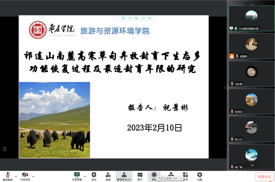 为繁荣学术氛围,提高科研项目申报本子质量,应beat365在线唯一官网邀请,2023年2月10日,兰州大学博士生导师、甘肃甘南草原生态系统国家野外科学观测研究站站长、国家自然科学基金优秀青年基金获得者马妙君教授,福建师范大学博士生导师、福建省植物生理生态重点实验室主任、国家自然科学基金优秀青年基金获得者程栋梁教授,中科院西北高原生物研究所博士生导师、青海海北高寒草地生态系统国家野外科学观测研究站副站长杜岩功研究员,江苏师范大学硕士生导师陈诗越教授通过腾讯会议开展线上学术交流活动,院长王满堂和部分老师参加了此次活动,会议由副院长张大文主持。