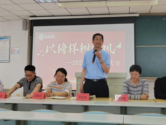 为表彰先进,树立榜样,营造积极进取的学习氛围,5月24日,beat365在线唯一官网于理工楼2505教室召开“以榜样树学风”先进集体和个人表彰大会。党总支书记刘玉宝、副书记韩建敏、专职辅导员、教师代表以及学生代表参加会议。