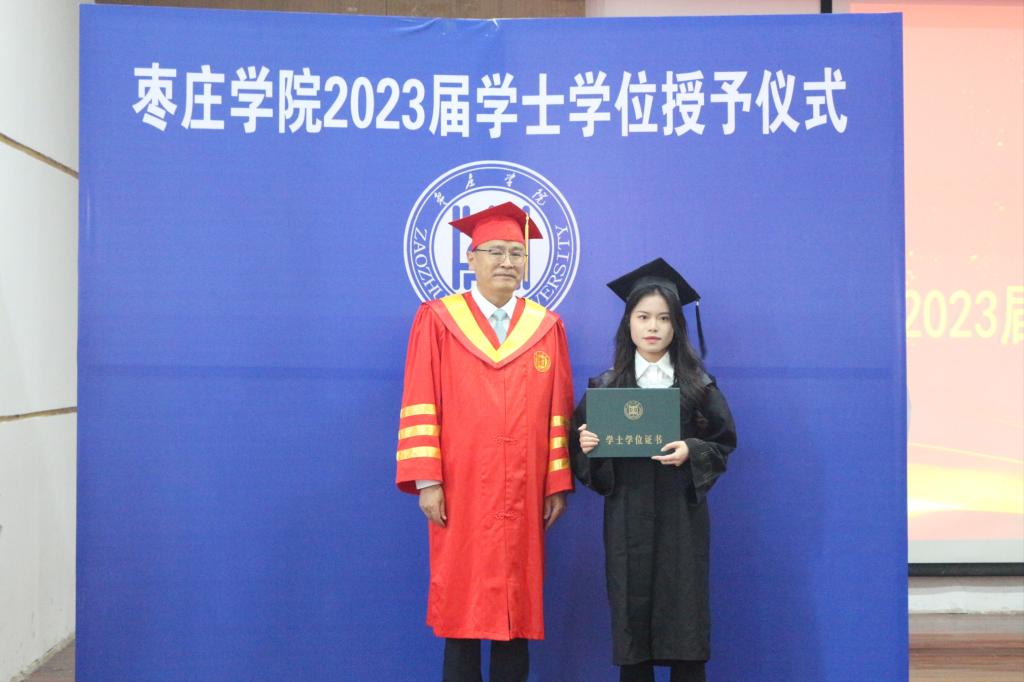 伴随着欢快的乐曲声,校党委委员、统战部部长林勇为毕业生逐一颁发学位证书、拨穗正冠、握手致意。毕业生们手捧学位证与校领导合影留念。