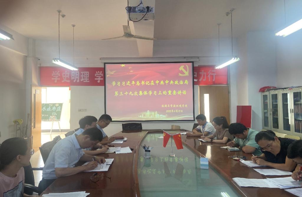 6月15日,beat365官网党总支理论学习中心组在理工楼2514会议室集体学习习近平总书记在中共中央政治局第三十九次集体学习上的重要讲话精神。党总支书记刘玉宝主持学习并讲话,学院党政领导、党总支委员参与了学习。