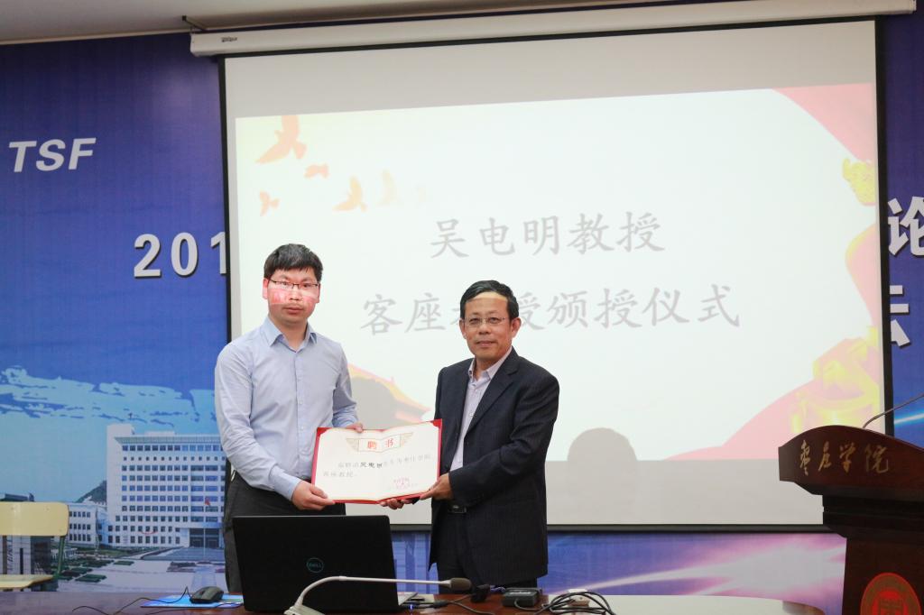 座谈会后副校长明清河教授为吴电明研究员颁发了客座教授聘任书。