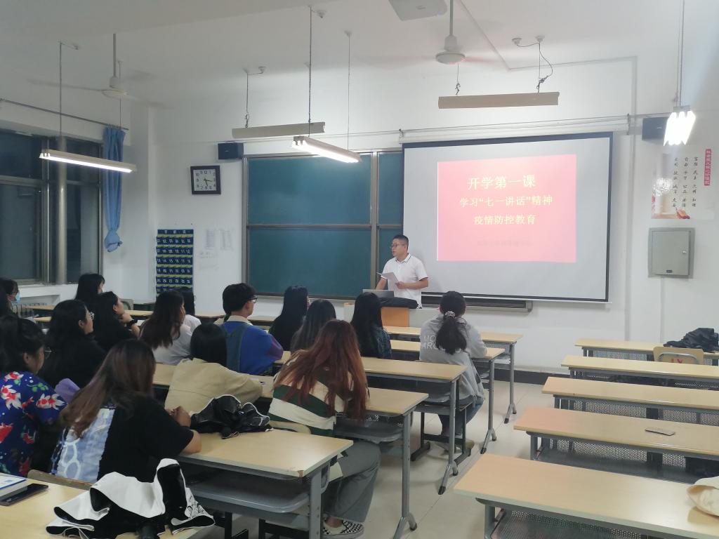 学院聚焦“七一讲话”、“疫情防控”主题,融入爱国主义、政治引领等内容,加强对学生的防控安全教育,引导学生厚植爱国主义情怀。随后,班主任们对疫情防控知识及在校注意事项、疫情防控期间学生管理规定等相关制度进行了详细解读。