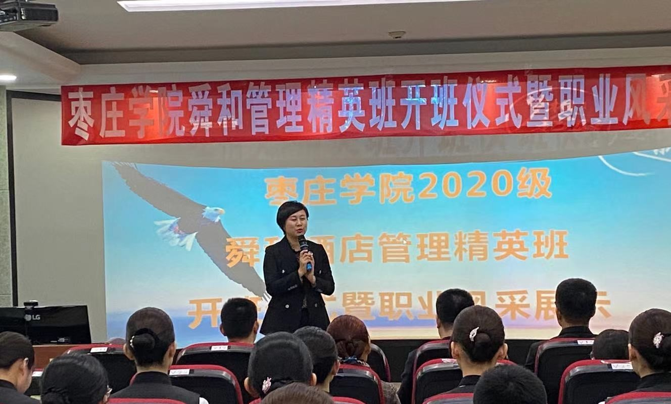 仪式上,山东舜和酒店集团副总裁白璐对学院的支持表示感谢,舜和管理精英班将会助力beat365在线唯一官网培养更多的应用型人才。院长助理张大文对山东舜和酒店集团白璐副总裁一行表示热烈欢迎,希望舜和管理精英班的同学们珍惜学习机会,尽快提升综合能力,以适应现代服务业发展的需要。随后2020级舜和酒店管理精英班举行了授旗仪式、文化展板以及职业风采展示。