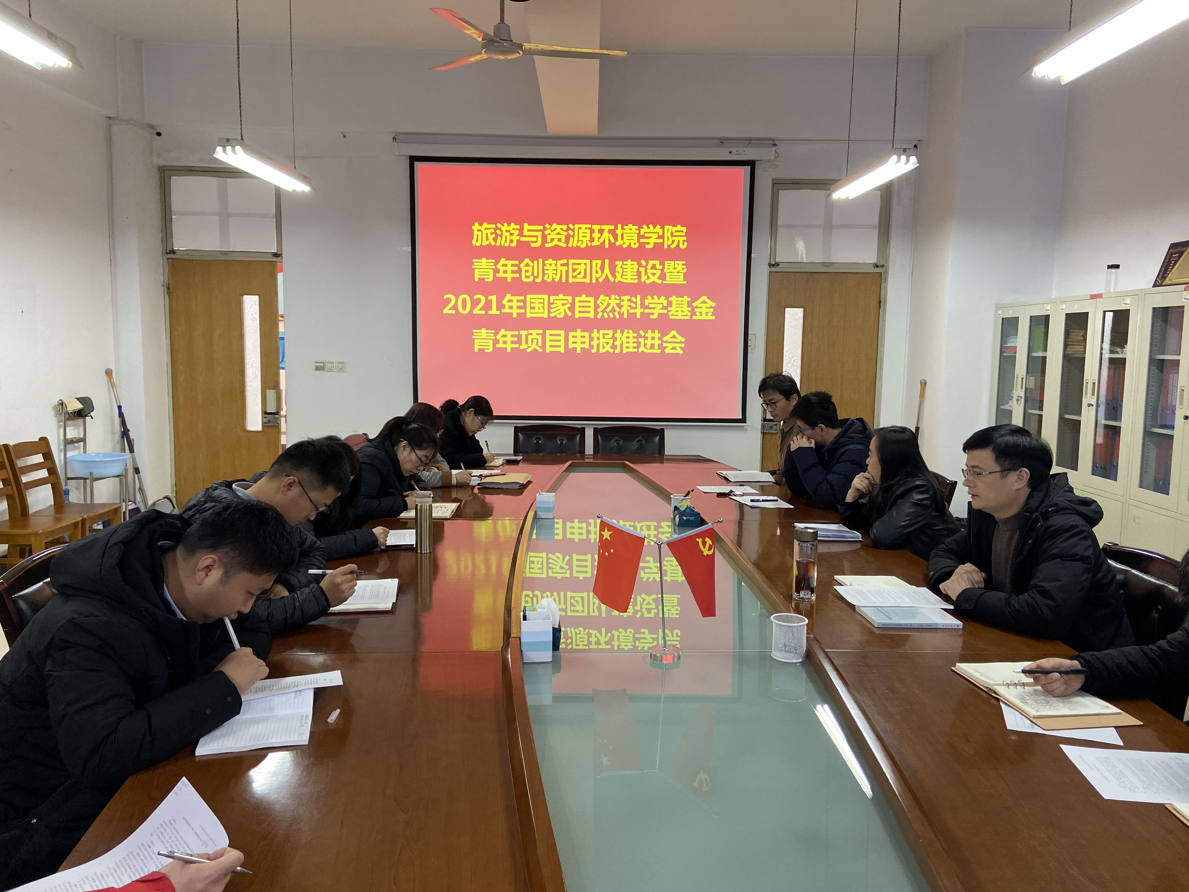 王满堂首先介绍了资源环境专业硕士点申请的基本条件,接着梳理了“十三五”期间beat365在线唯一官网学科建设和科研的成绩及存在的问题,并提出学院“十四五”学科建设和科研规划。对标资源环境专硕点建设要求,学院成立两个青年创新团队并制定了团队建设方案。会上,邀请近三年获得国家自然科学基金青年项目的张大文、彭文彬、滕晓华、贺慧丹等4位博士分别从怎么挑选研究课题、选择关键词、避免明显的漏洞与弱点等作了介绍,并重点阐述了从创新思维角度凝练科学问题,提出科学假设,明确研究思路,兼顾需要性与目的性原则、创新性与先进性原则以及科学性原则编制基金申请书的过程。