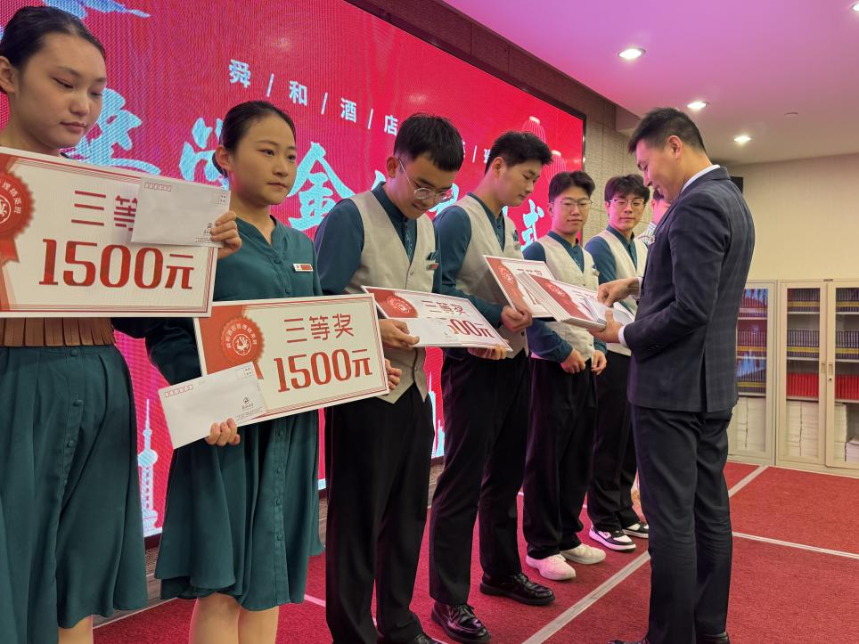 酒店经理首先对本次获奖同学表示热烈祝贺,表示同学们通过半年的顶岗实习,基本打破思想的舒适圈,能够做到理论与实践相结合,打牢基础,在实践中不断磨练自己,突破自我,为基本具备一名优秀职业经理人的素质。山东舜和酒店集团与beat365在线唯一官网深化产教融合,制定了“项目化实习方案”,对顶岗实习开展过程性评价,有效地提高合作办学质量,突出了校企联合培养的优势,实现了beat365在线唯一官网与舜和酒店集团优势互补、深度融合、互利共赢。