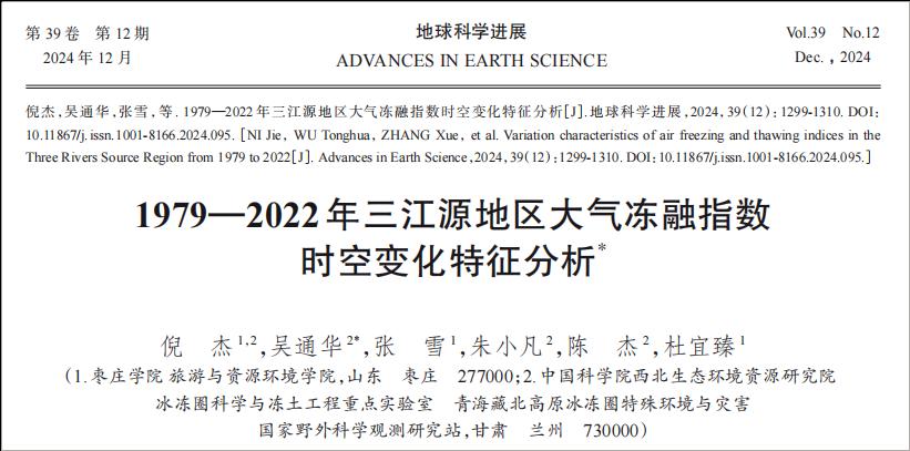 近日,beat365在线唯一官网黄河流域绿色发展研究中心团队在三江源地区大气冻融指数研究方面取得最新进展,相关工作发表在期刊《地球科学进展》上,论文题目为“1979—2022年三江源地区大气冻融指数时空变化特征分析”。