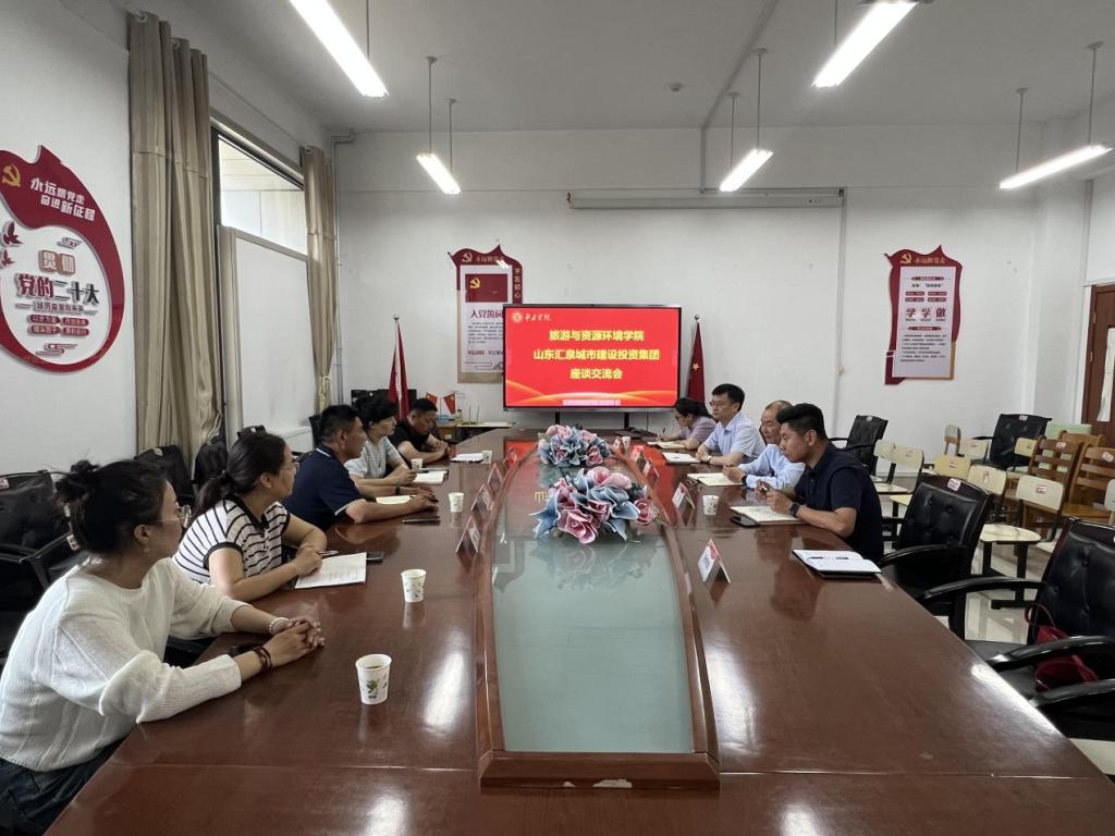 5月19日,山东汇泉城市建设投资集团副总经理郝军、市中区建筑设计院副院长秦艳一行4人来beat365官网洽谈交流。双方在豁然楼A415会议室举行座谈。beat365在线唯一官网党委书记李中军、院长王满堂、合作发展处副处长吴旻等出席座谈会。