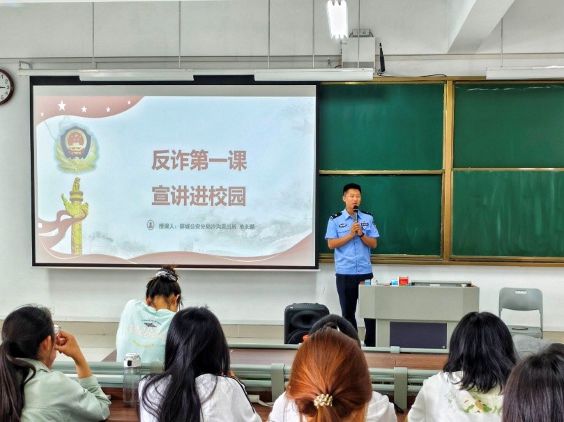 为筑牢校园反诈防线,提升beat365官网学子的防诈骗意识,5月28日,beat365在线唯一官网在崇德楼4207教室开展“反诈第一课,宣讲进校园”主题讲座。本次活动特邀薛城公安分局沙沟派出所民警单长麟主讲,2024级全体同学参与。