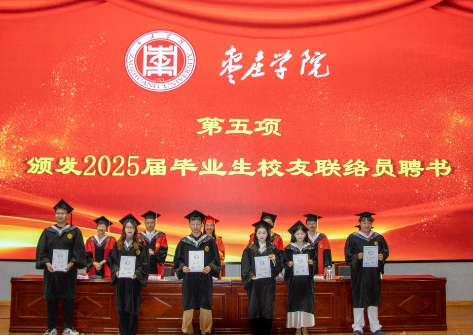 与会领导为2025届毕业生联络员颁发聘书,以一纸聘书搭建起校友与母校的情感桥梁,凝聚携手共进的力量。