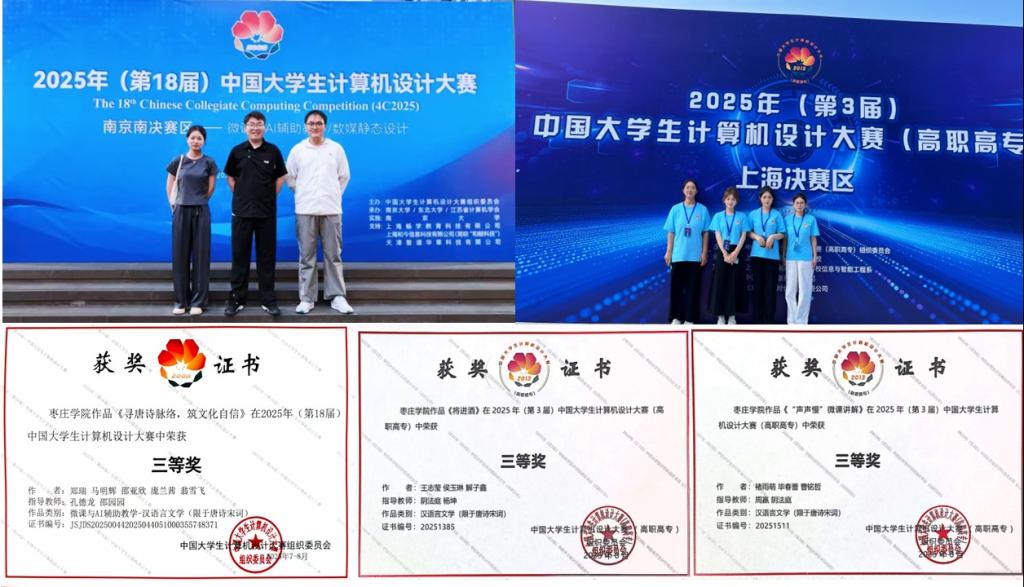 近日,2025年(第18届)中国大学生计算机设计大赛(本科赛道与高职高专赛道)、第十三届山东省师范类高校学生从业技能大赛以及第十五届全国大学生红色旅游创意策划大赛初赛陆续落下帷幕,beat365官网学子分别在三项赛事不同类别竞赛中喜获佳绩。