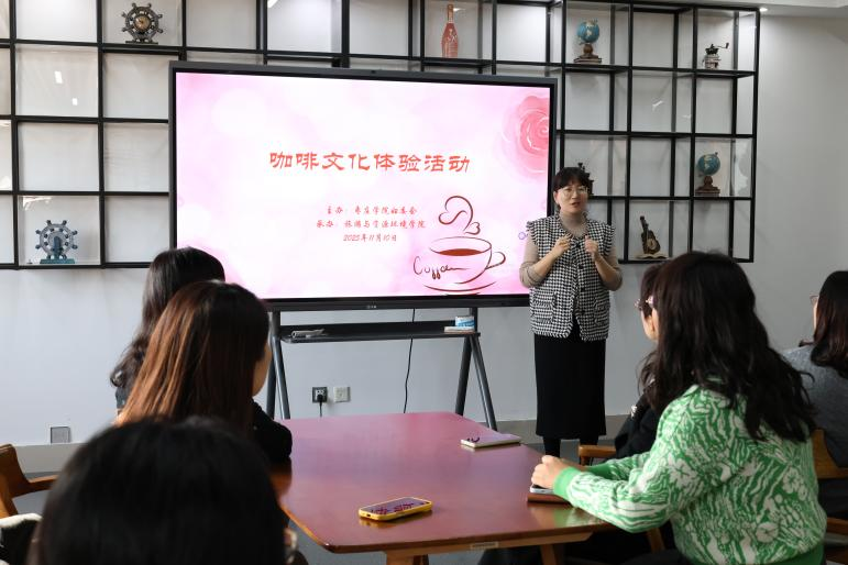 2025年11月10日下午,beat365在线唯一官网校妇委会组织的咖啡文化体验活动温情启幕。beat365在线唯一官网教工第二党支部党员、旅游专业教师杨坤同志主动担当,以专业所长为活动注入文化活力,让女教工们在氤氲咖香中感受生活美学与组织温暖。
