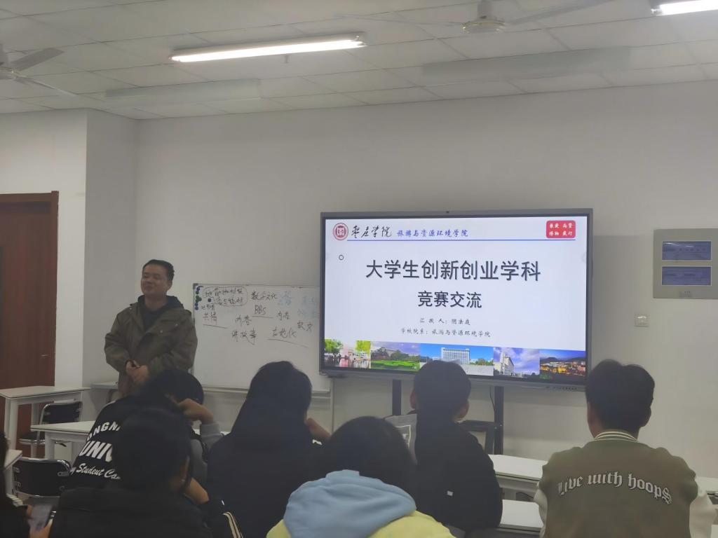 活动由地理科学教研室主任董志鹏博士和创新创业教研室主任阴法庭博士主讲。董志鹏博士系统阐述了专业的办学历史、师资队伍、人才培养特色以及发展前景,详细介绍了专业课程体系、实践教学环节(包括野外实习、教育见习与实习等)以及未来的升学与就业方向。最后对地理科学实验室安全工作进行了培训教育。阴法庭博士分享了创新创业学科竞赛方面的经验知识,分别从政策解读、竞赛性质分类、项目选择、团队组建、参赛注意事项等方面展开,并通过具体案例分享,详细阐述了科研主导型和公益型参赛项目的特色,极大得提升了学生参加竞赛的热情和兴趣。