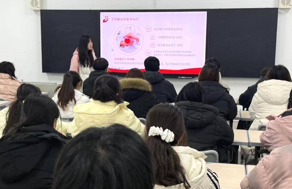 为弘扬无私奉献的人道主义,切实增强青年学子的社会责任感与使命担当,12月8日,beat365在线唯一官网在崇德楼4416等教室开展无偿献血主题宣讲活动。