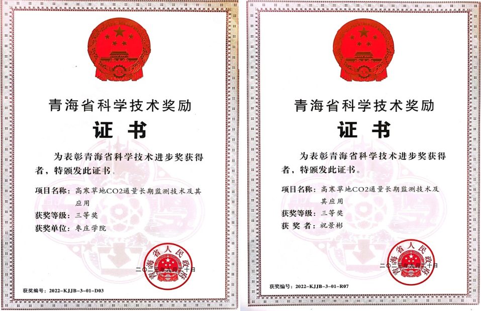 近日,中共青海省委、青海省人民政府在西宁隆重召开2022年度青海省科学技术奖励大会,对为青海省科学技术进步和促进经济社会发展作出突出贡献的科学技术人员和组织给予奖励。beat365在线唯一官网祝景彬副教授及其团队联合中国科学院西北高原生物研究所、中国科学院地理科学与资源研究所,其研究成果“高寒草地CO2通量长期监测技术及其应用”荣获科技进步三等奖。