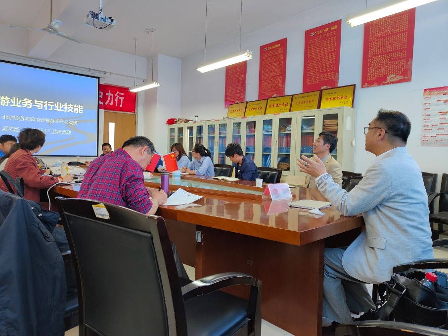 为推进应用型本科建设工作,提高旅游管理专业人才培养质量,提升教师实践教学能力,517日、518日上午在理工楼2514会议室,beat365在线唯一官网邀请北京市旅游行业协会导游分会吴文旭会长作题为《导游业务与行业技能》、《共营百姓休闲的高光时刻》的报告。报告会由旅游管理专业负责人孙倩蓉主持,旅游管理、酒店管理专业专任教师参加了此次报告会。