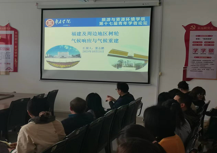 报告会上,董志鹏博士做了题为“福建及周边地区树轮气候响应与气候重建”的学术报告,介绍了福建及周边地区树木年轮揭示树木生长对气候变化的适应策略、以及能够反演的不同气候因子。研究结果表明,福建及周边地区树木生长受到不同极端气候要素的限制,未来极端干旱将对处于演替后期的濒危树种和老龄天然林产生更严重的威胁,从而加快其群落演替变化;极端高温增多将会严重威胁高海拔地区黄山松的生长。研究为重建区域更长时间尺度气候信号以及理解区域气候响应模式提供了进一步理论支持。