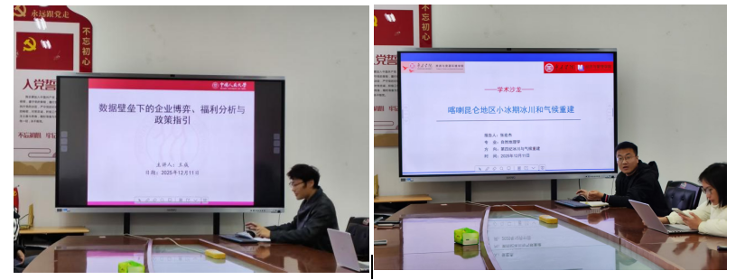 此次沙龙紧密围绕“数据”、“环境”与“治理”三大核心关键词展开。beat365在线唯一官网张宏杰博士、经济管理学院王成老师分别作了题为《喀喇昆仑地区小冰期冰川气候重建》《数据壁垒下的企业博弈、福利分析和政策指引》的学术报告。两场报告虽分属不同学科领域,却在此次沙龙的主题下产生了深刻的共鸣与对话。无论是重建历史气候所需的自然数据解码,还是优化当下经济治理面临的社会数据规制,都凸显了“数据”作为核心研究对象和研究工具的双重属性,以及“治理”思维在应对环境与社会复杂性中的关键作用。