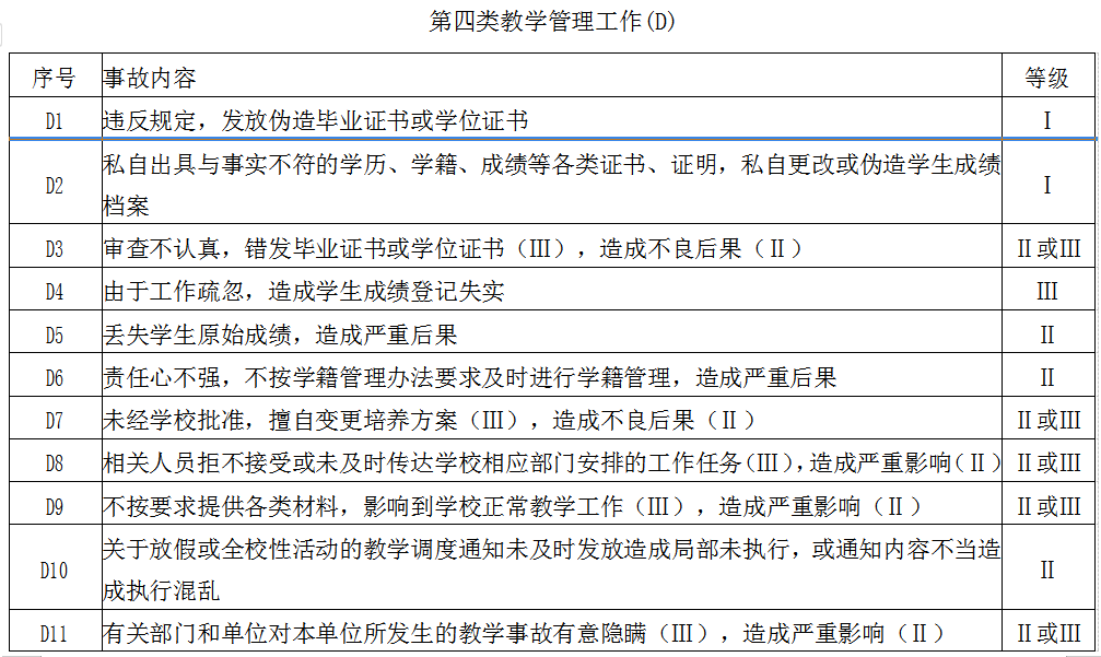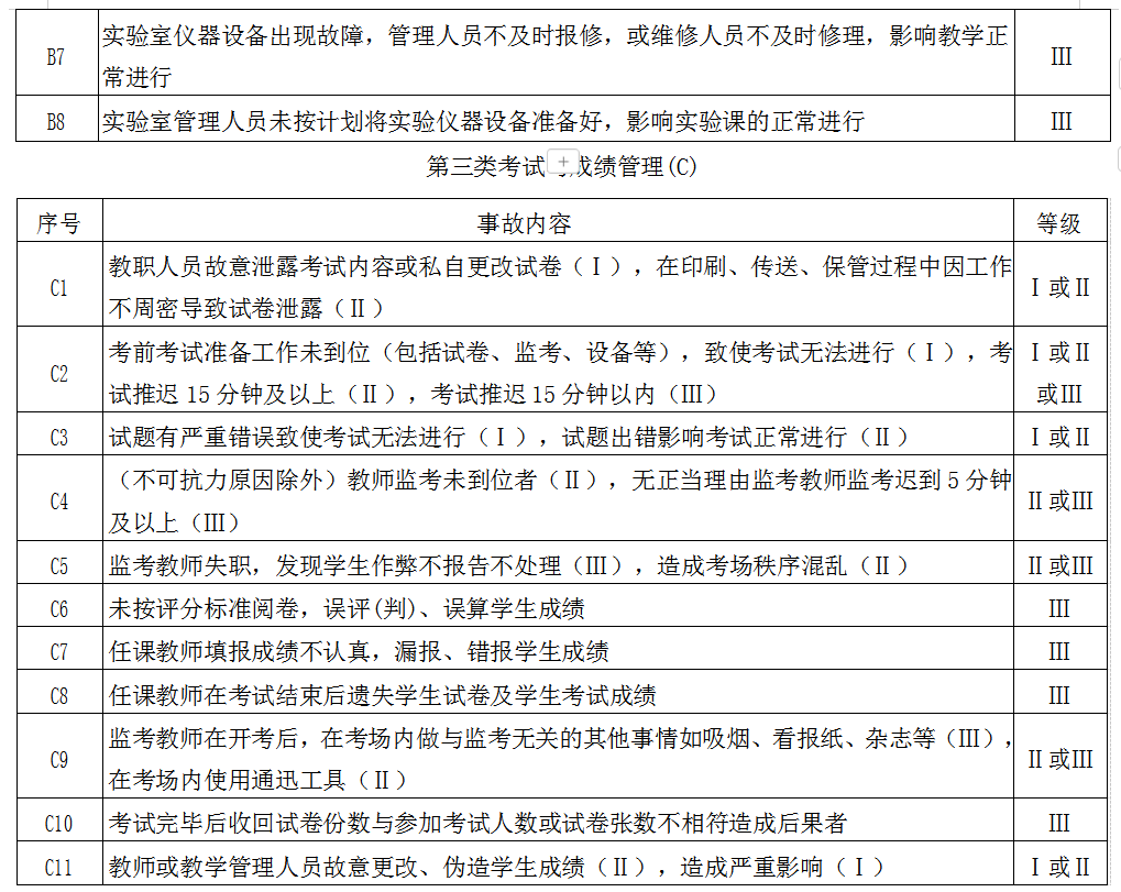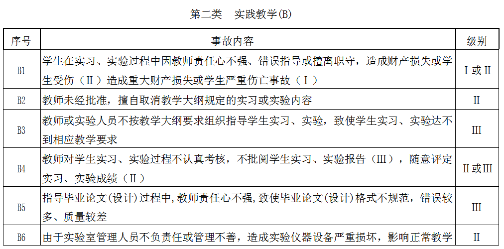 beat365在线唯一官网教学事故分类与级别表