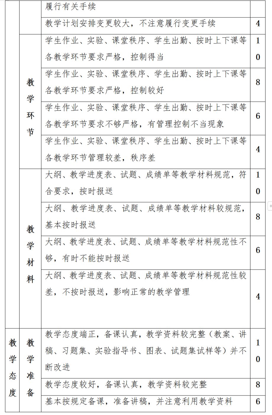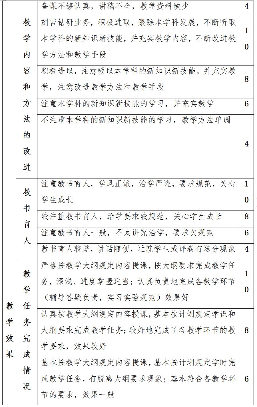 (1)专任教师(同行)评教由院教学质量评价领导小组设计评价打分表(附件1),负责具体实施。
