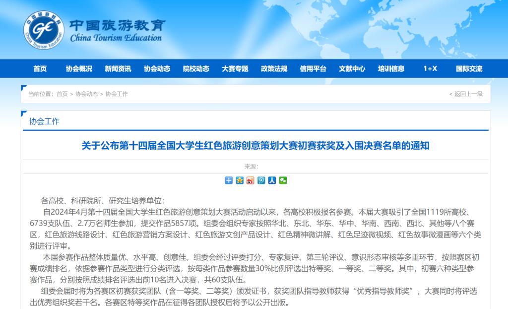 由文化和旅游部资源开发司,国家发展改革委社会发展司,共青团中央宣传部,北京第二外国语学院共同举办的第十四届全国大学生红色旅游创意策划大赛正式公布初赛获奖名单。本次大赛共吸引了全国1119所高校、6739支队伍、2.7万名师生参与。