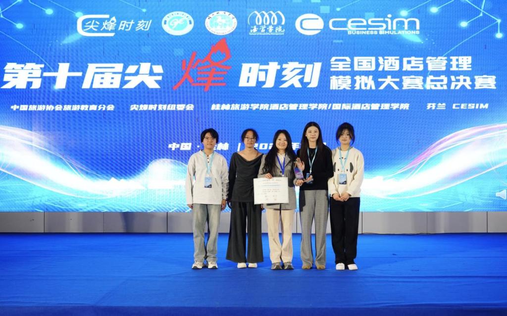 12月5日-7日,第十届“尖峰时刻”全国酒店管理模拟大赛总决赛在桂林旅游学院圆满落幕。2023级酒店管理专业学生杜美静、贾新蕾、马晶、雷天蕊组成的参赛团队(指导教师:张艳如),首次斩获全国二等奖。