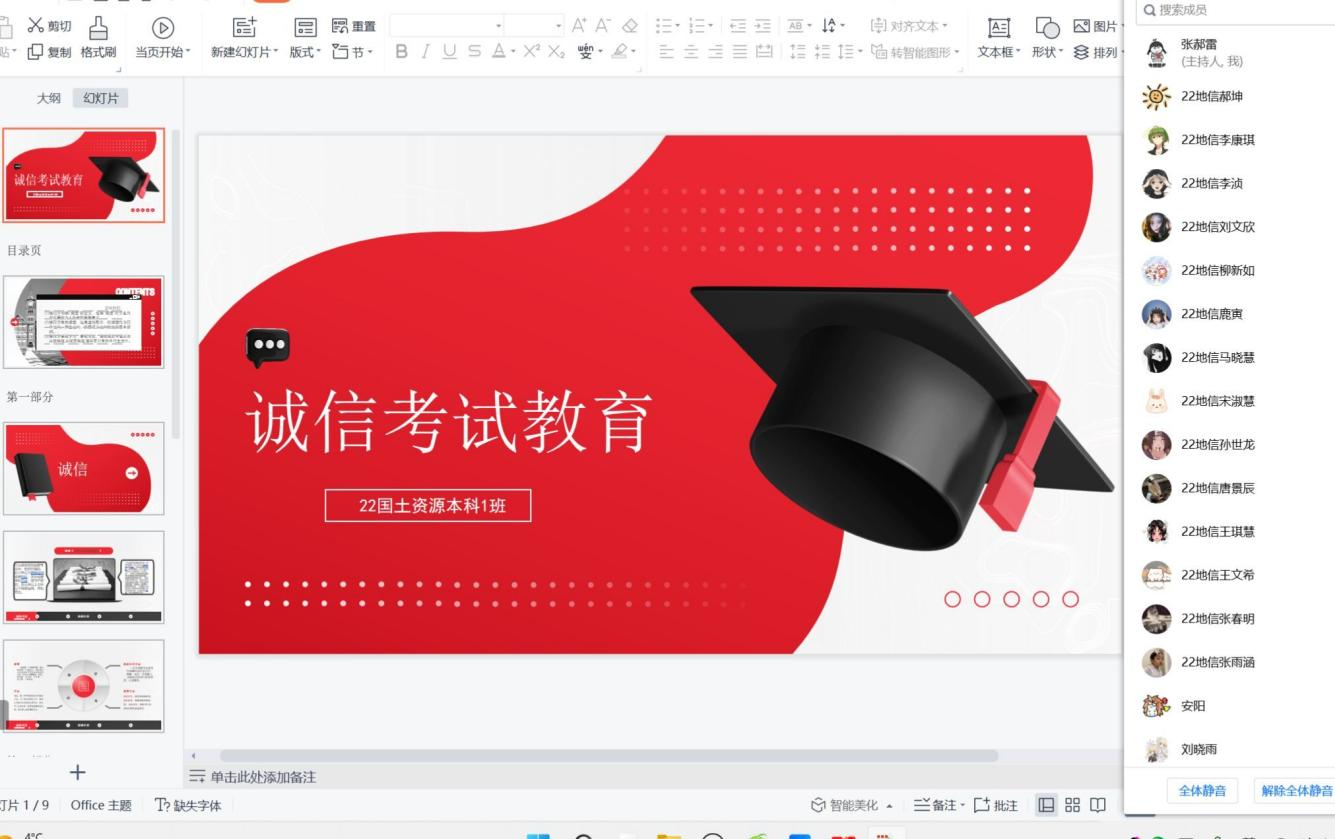 此次班会主要内容主要有三部分,一是由班主任老师传达学生线上考试注意事项,对线上考试注意事项做出详细解释,保证每位学生熟知考试流程和规则;二是对全体学生进行诚信应试教育,考试期间如发现作弊或存在违规行为将面临处分,同时要求每位学生以群内接龙或手写承诺书的方式做出本次诚信应试承诺;三是班主任老师深入了解学生在此次线上考试中存在的困难和问题,及时帮助学生解决问题并反馈给学院,保证本次线上考试顺利展开。