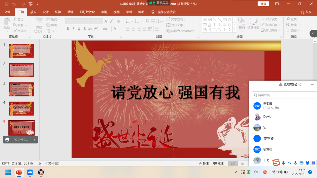 为庆祝祖国华诞,迎接党的二十大胜利召开,10月3日,beat365在线唯一官网各班级开展“与国庆华诞,共话新篇章”线上主题团日活动。