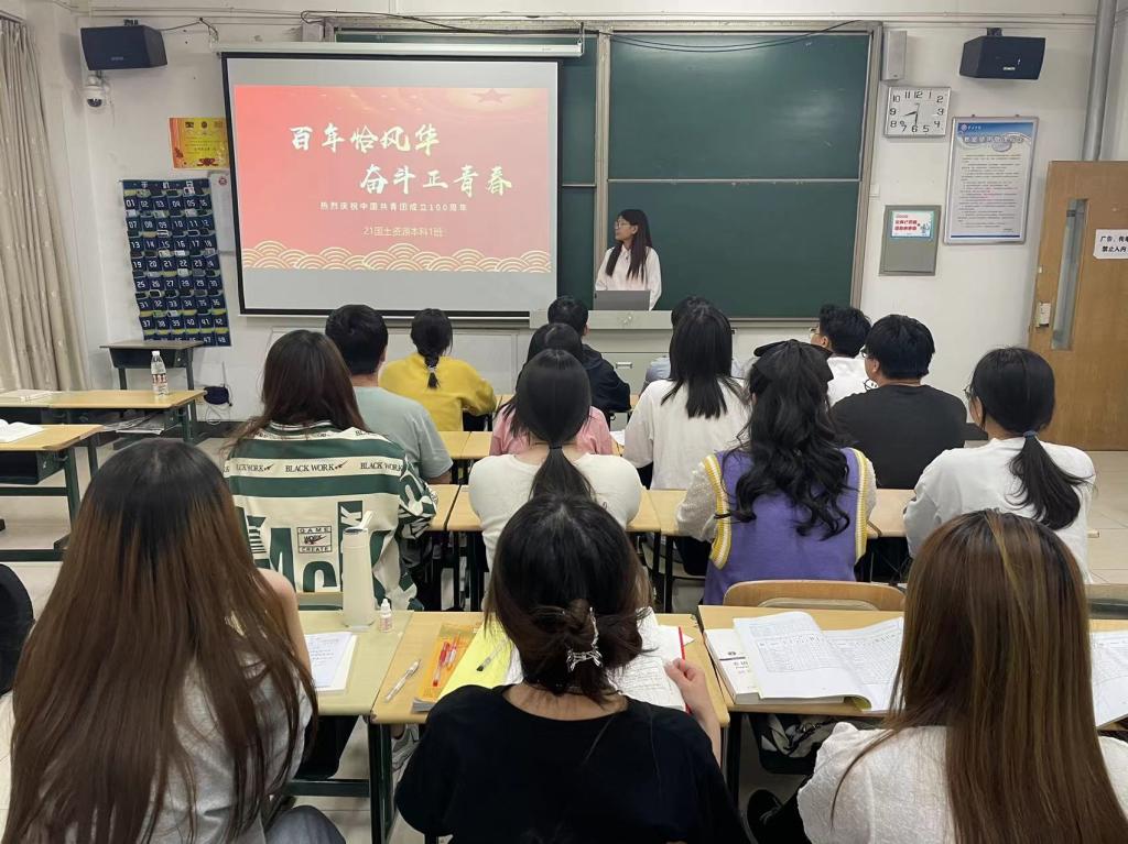 主讲人引领学生回顾了中国共产主义青年团建立的艰难历程,100年栉风沐雨,共青团始终坚定不移的跟党走,团结带领共青团员勇当先锋。同学们在对中国共产主义青年团团章及基本知识进行学习后,进一步了解了共青团的优良传统和光荣历史,明确了共青团员的权利和义务。随后,在主讲人的带领下,同学们分别阐述对共产主义青年团的认识以及如何将共产主义精神内化于心,外化于行,严格要求自己,争取成为一名优秀的中国共产主义青年团员。