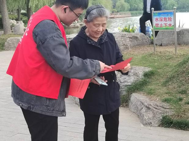 活动伊始,beat365官网志愿者分工协作,通过向居民派发宣传册、讲解习近平新时代中国特色社会主义思想,带领居民们深入学习贯彻党的二十大精神。此外,志愿者发放环保宣传单向居民们普及环保知识是居民们了解我国环境现状,倡导大家从点滴做起,节约资源保护环境。同时,为进一步增强社区老人防诈骗意识,志愿者们针对网络信息快速发展现状,重点向社区老人讲解诈骗手段与防骗技术,告知如何应对、防止上当受骗的方法。