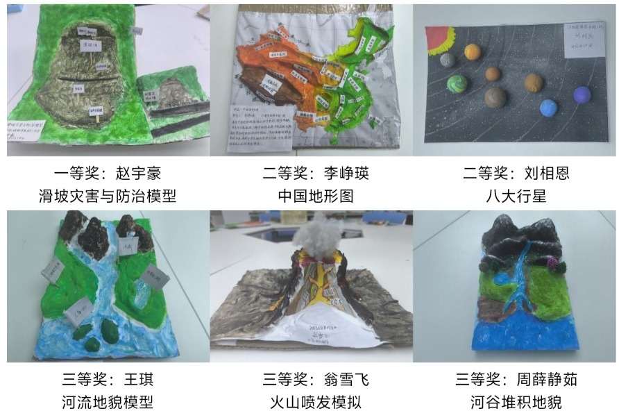 大赛伊始,参赛人员展示参赛作品,作品种类丰富,涵盖地形地貌、气候环境、人口城市等众多地理学科领域。同时参赛选手结合自身参赛作品,详细讲解模型的设计理念、所体现的地理内容以及制作过程中的难点与突破,展现出其扎实的地理知识功底和对地理学科的浓厚热情。最后,评委老师从“教育性与科学性、操作性与趣味性、创新性与艺术性”三个方面对作品进行综合打分,并鼓励学生在今后的学习旅程中,持续保持探索精神,勇于创新实践。