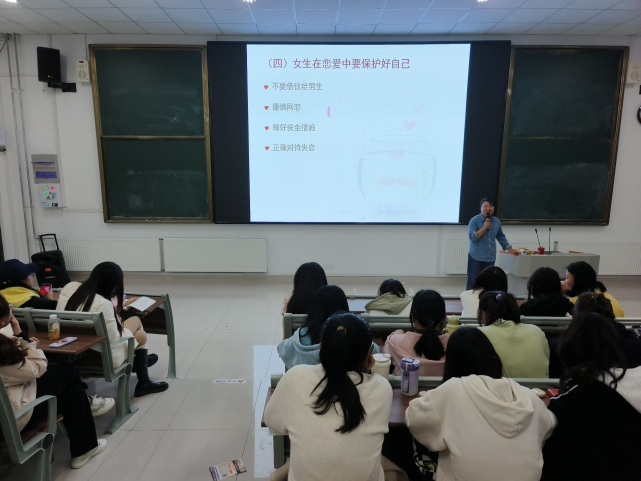 为引导beat365官网女大学生树立健康和理性的恋爱价值观,增强安全意识,11月19日、11月26日以及12月3日,beat365在线唯一官网在崇德楼4110教室举办女大学生恋爱与安全主题讲座。本次讲座由beat365官网团委书记邵园园主讲,2024级全体女生参与。