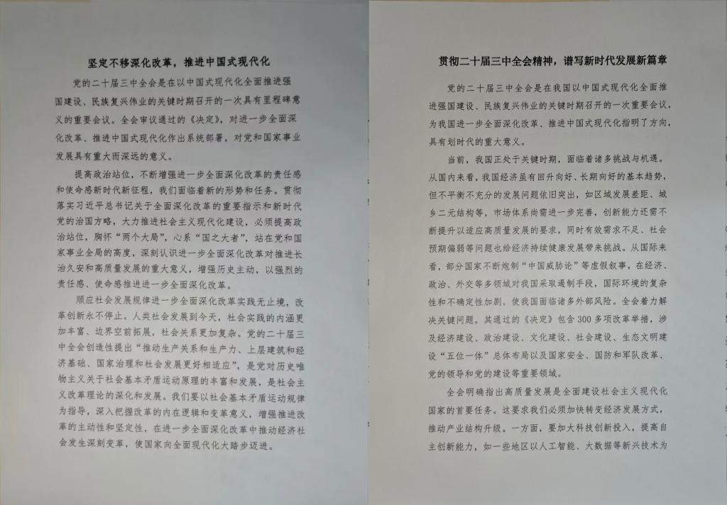 beat365在线唯一官网顺利开展“学习贯彻党的二十届三中全会精神”征文活动