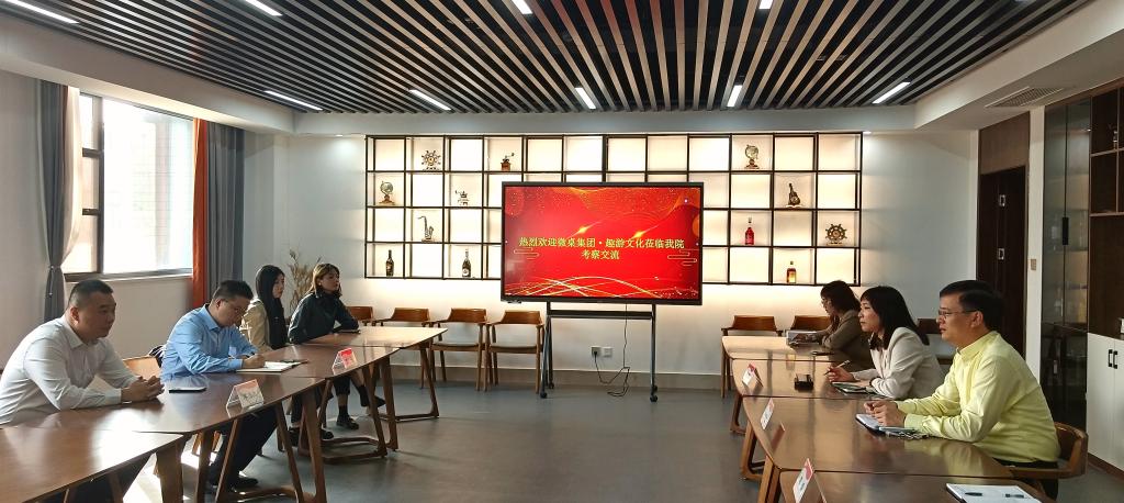10月16日下午,山东微桌科技服务有限公司董事长李浩然、趣游文化(山东)有限公司副总经理李宁一行5人来beat365在线唯一官网交流。双方在豁然楼五楼C508咖啡实训室举行座谈,院长王满堂、旅游类专业相关负责人及部分专业教师参加了交流座谈。