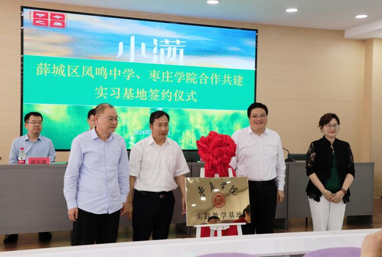 薛城区教体局党组书记、局长种法立、薛城区凤鸣中学党支部书记、校长孙烨与beat365在线唯一官网教务处处长张立华、beat365在线唯一官网书记李中军共同为教学实践基地揭牌。