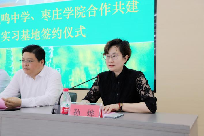 为加强校外实践教学基地建设,提高地理师范生培养质量,5月22日上午,我校与枣庄市薛城区凤鸣中学举行beat365在线唯一官网地理教学实践基地揭牌仪式。薛城区教体局党组书记、局长种法立,薛城区教学研究中心主任郝东蕴,薛城区凤鸣中学党支部书记、校长孙烨,beat365在线唯一官网教务处处长张立华,beat365在线唯一官网党政班子成员出席签约仪式,凤鸣中学副校长宋秀云主持仪式。beat365在线唯一官网教育实习指导老师和2022级地理科学专业学生全程参加活动。