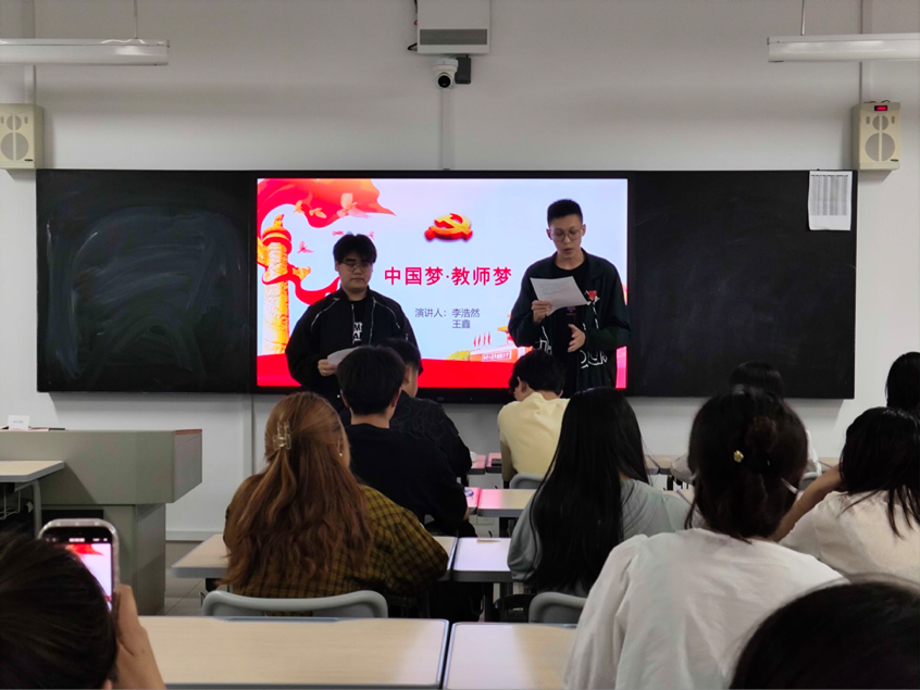 活动现场,选手们紧紧围绕“我的教师梦”这一主题,结合自己的亲身经历和感悟,用真挚的情感和生动的语言描绘了自己心中的教师梦。他们畅谈自己对教育的热爱,探讨如何通过教育实现个人价值和社会价值。每一位选手的演讲都展现了他们对教育事业的热忱与追求,现场观众深受感染。经过激烈的角逐,评委们秉持公平、公正、公开原则,从选手们的演讲内容、表达技巧、情感投入等多个方面进行了综合评分。最终,冯小津、张露、刘翔宇同学凭借其深情并茂的演讲和独特的教育见解,荣获本次比赛的一等奖。