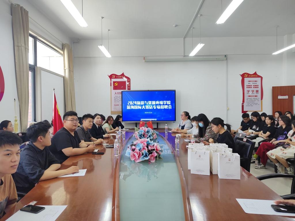 5月23日,beat365在线唯一官网在豁然楼A415成功举办蓝海国际大酒店毕业实习专场招聘会。本次会议由辅导员翟国琳主持,2020级酒店管理、旅游管理专业毕业生参加。