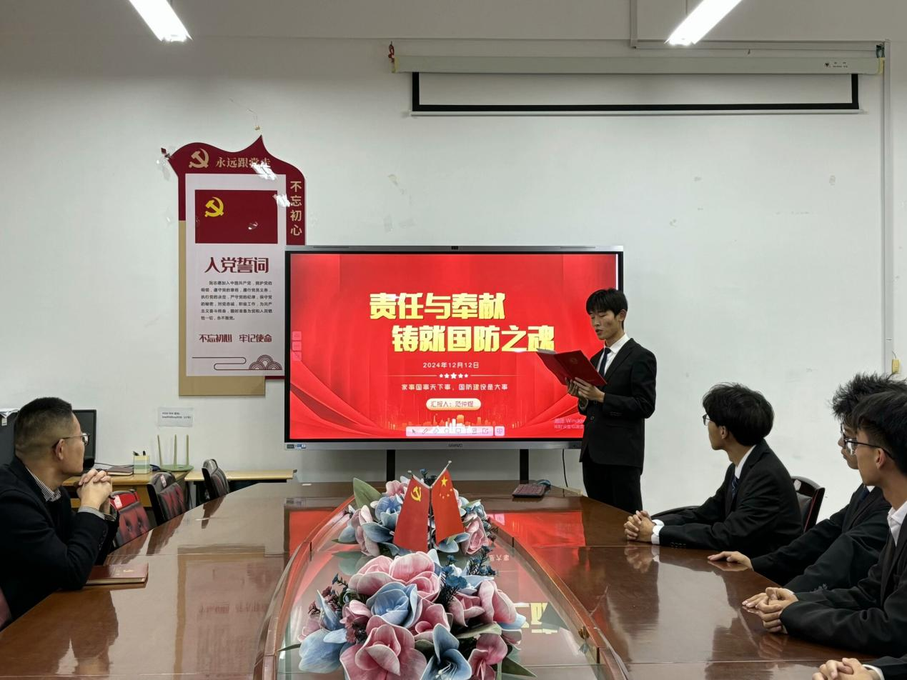 为进一步强化国防教育,引导青年学生厚植家国情怀,12月12日,beat365在线唯一官网学生党支部在豁然楼A415会议室开展“爱我国防”主题演讲比赛,辅导员老师范增良、周赢、冯淑鹃出席本次活动,beat365官网学生党员积极参加。