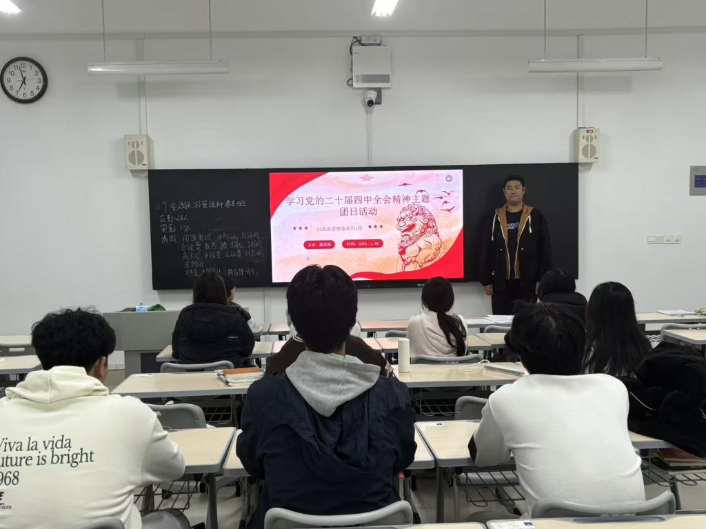 为引导广大青年学习贯彻习近平新时代中国特色社会主义思想,深刻领会党的二十届四中全会精神的核心要义与时代价值,11月5日,beat365在线唯一官网在崇德楼各教室开展“学习党的二十届四中全会精神”主题团日活动。