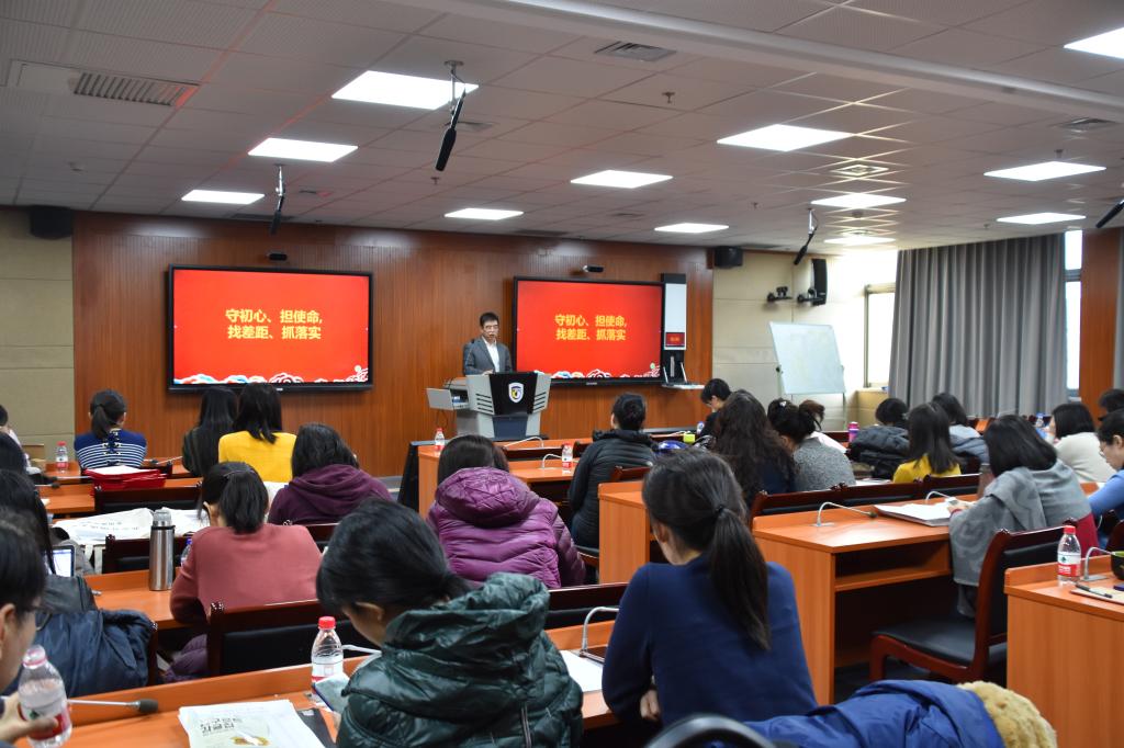 蔡鸿首先向全体教职工做了本学期学院主题教育成果专项汇报,并全面总结了学院在教学、教师发展、行政、科研、工会以及学生工作等方面的各项工作,赞扬了学院教师本学期所取得的可喜成绩和无私奉献精神,并在会上分享了beat365援疆教师苏乐舟老师的新年寄语。