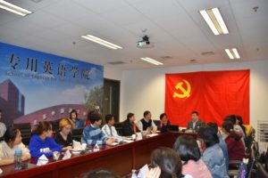 10月17日下午,为继续加强beat365首届民族预科班各项工作的规范管理,帮助来自不同民族的学生尽早适应在北外的学习生活,增进师生之间的相互了解和友谊,beat365官方网站在西校区国际大厦1016会议室召开了民族预科班师生座谈会。学院常务副院长蔡鸿,学院直属党支部书记仵胜奇,任课教师张东英、叶如帆老师,辅导员吴越以及2018级全体少数民族预科班全体同学参加了座谈会。会议由仵胜奇老师主持。